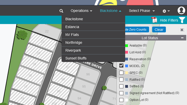 When you've selected a community you will see a map of that community and all of the lots that are in it.